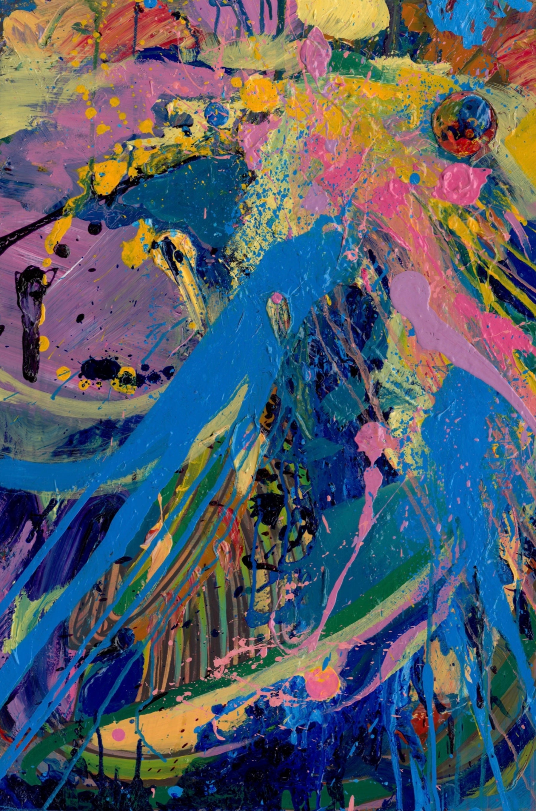 Experience the hidden beauty of "Abstract Freedom" - an acrylic painting on canvas that started as a realistic portrayal of a woman, lying in the fetal position, surrounded by chaos. As I worked on her I found myself more drawn to the chaotic brushstrokes around her body and slowly started to cover her in them. Eventually she was completely swallowed up by the background.