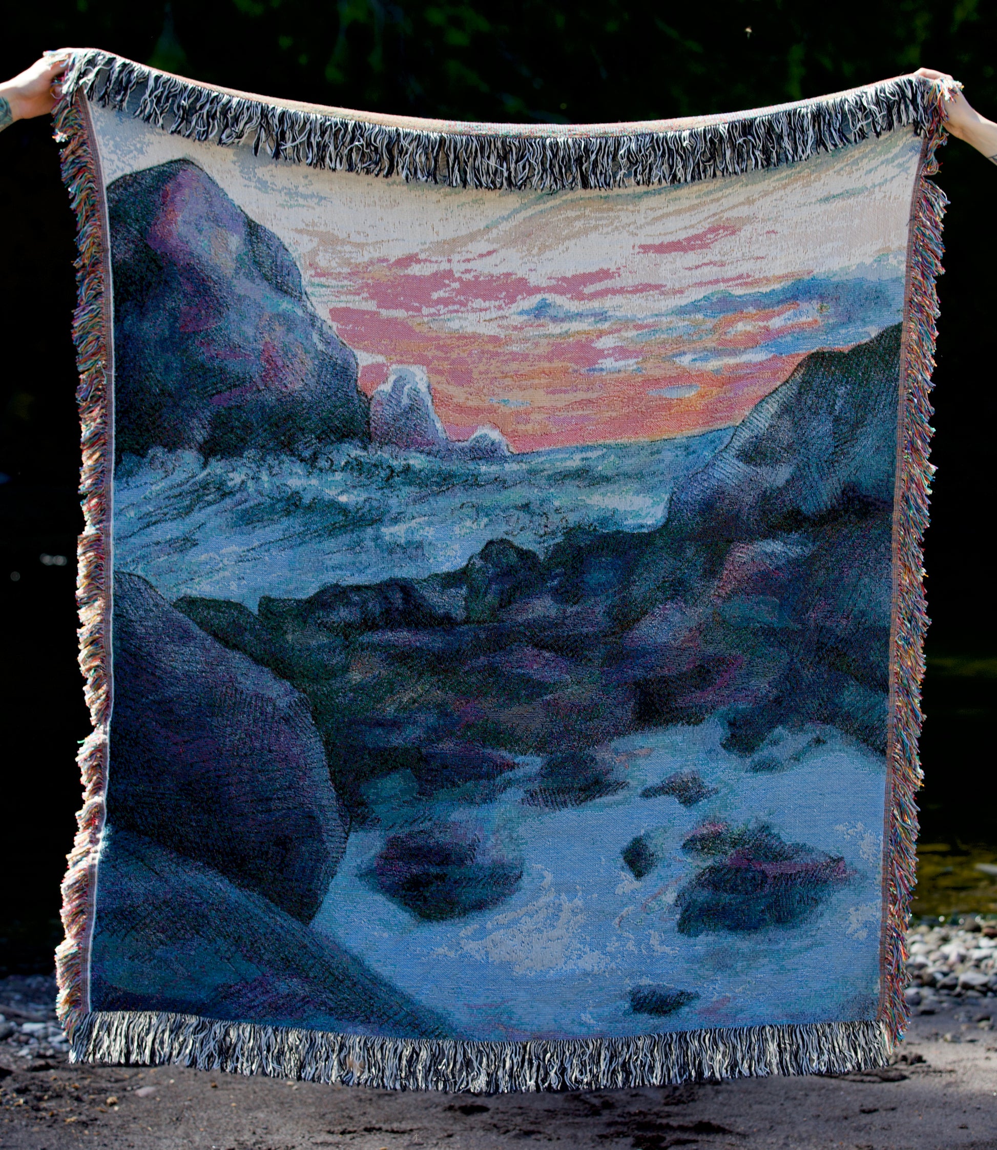 Experience the peacefulness of the Cali Coast with my versatile blanket/tapestry. Featuring tranquil blue waters at sunset, this high-quality piece brings serenity to any room. Its dual use makes it perfect for both cozy snuggles or as a decorative wall hanging.