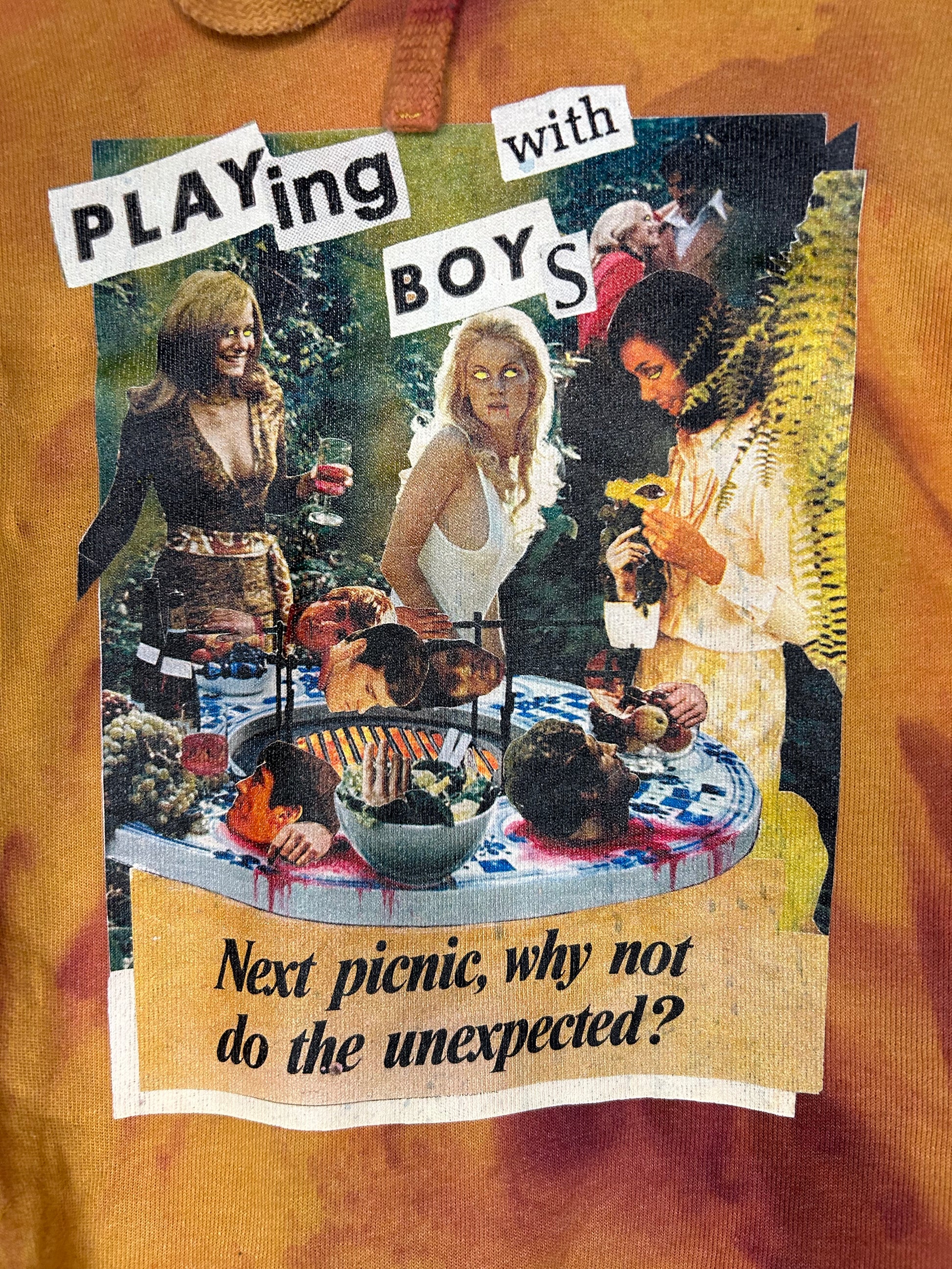 Transformed from old PlayBoy magazines, my collaged designs celebrate female empowerment. Now they have become “Playing with Boys”. I want to celebrate the women that were photographed, as they were some of the first sexual icons. Though my work, I have given them new life and have turned the tables on the idea of women being a product for men to enjoy. Now the Fems of the world have the control.
